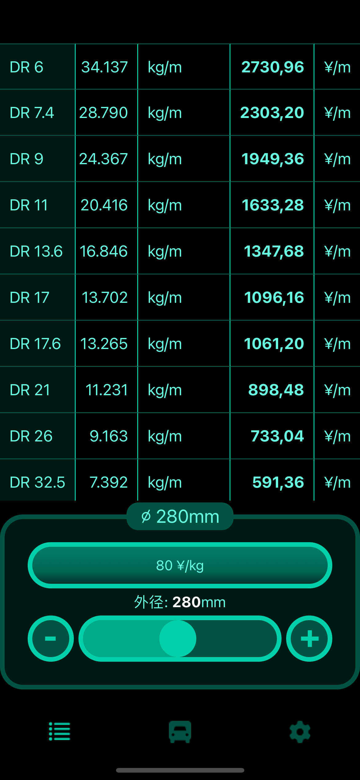 管のコストを重量単位(キログラムまたはポンドあたり)から長さ単位(メートルまたはフィートあたり)の価格に変換。あらゆる通貨での迅速な見積もりや商談提案に最適。