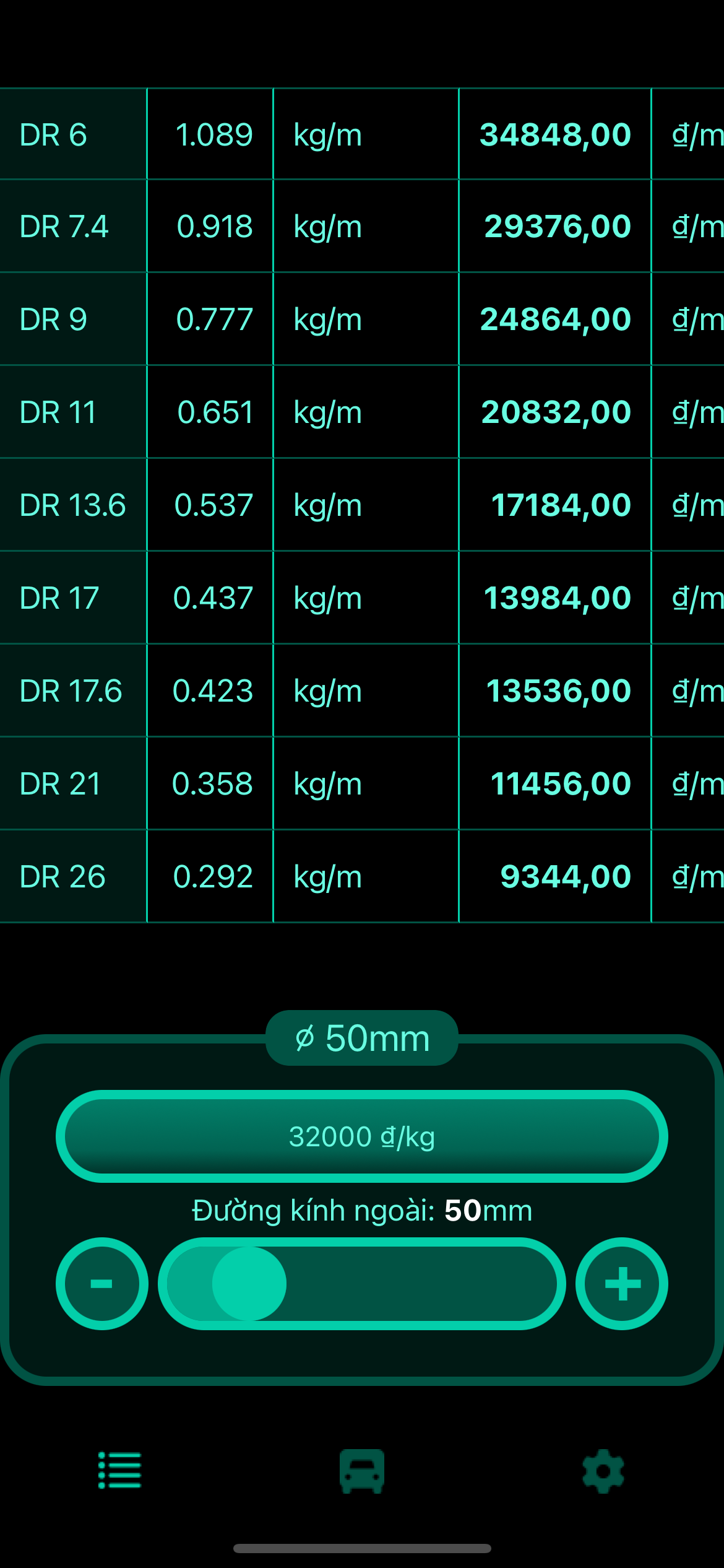 Chuyển đổi chi phí ống từ giá trên mỗi kilôgam (hoặc pound) sang giá trên mỗi mét dài (hoặc foot) – hoàn hảo để tạo báo giá và đề xuất thương mại nhanh chóng bằng bất kỳ loại tiền tệ nào.