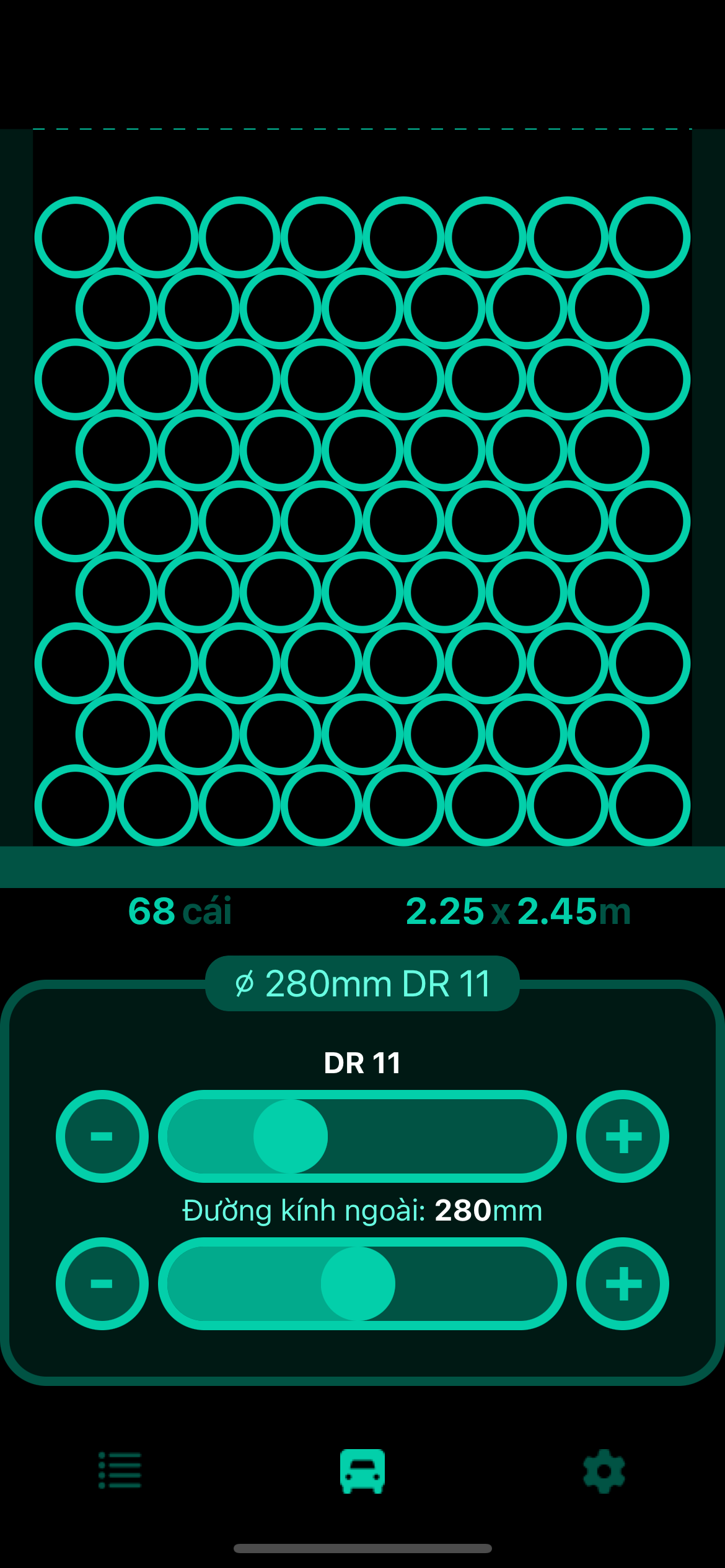 Tính toán số lượng ống chất được lên xe dựa trên kích thước xe và đường kính ống. Tối ưu hóa hậu cần và giảm chi phí vận chuyển. Hỗ trợ đơn vị hệ mét và hệ Anh.